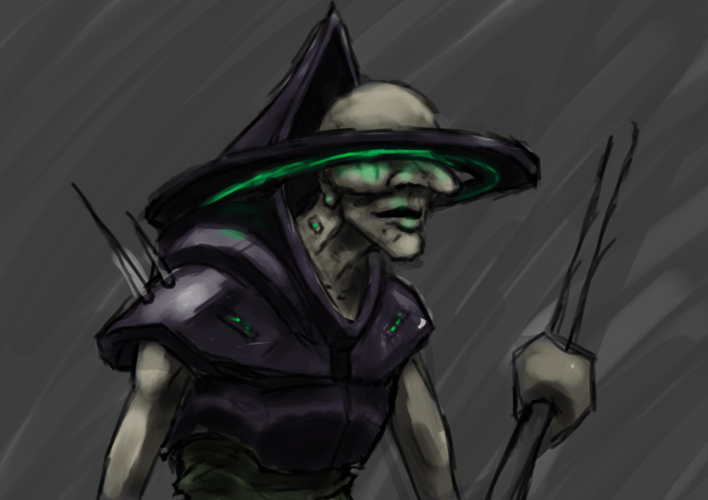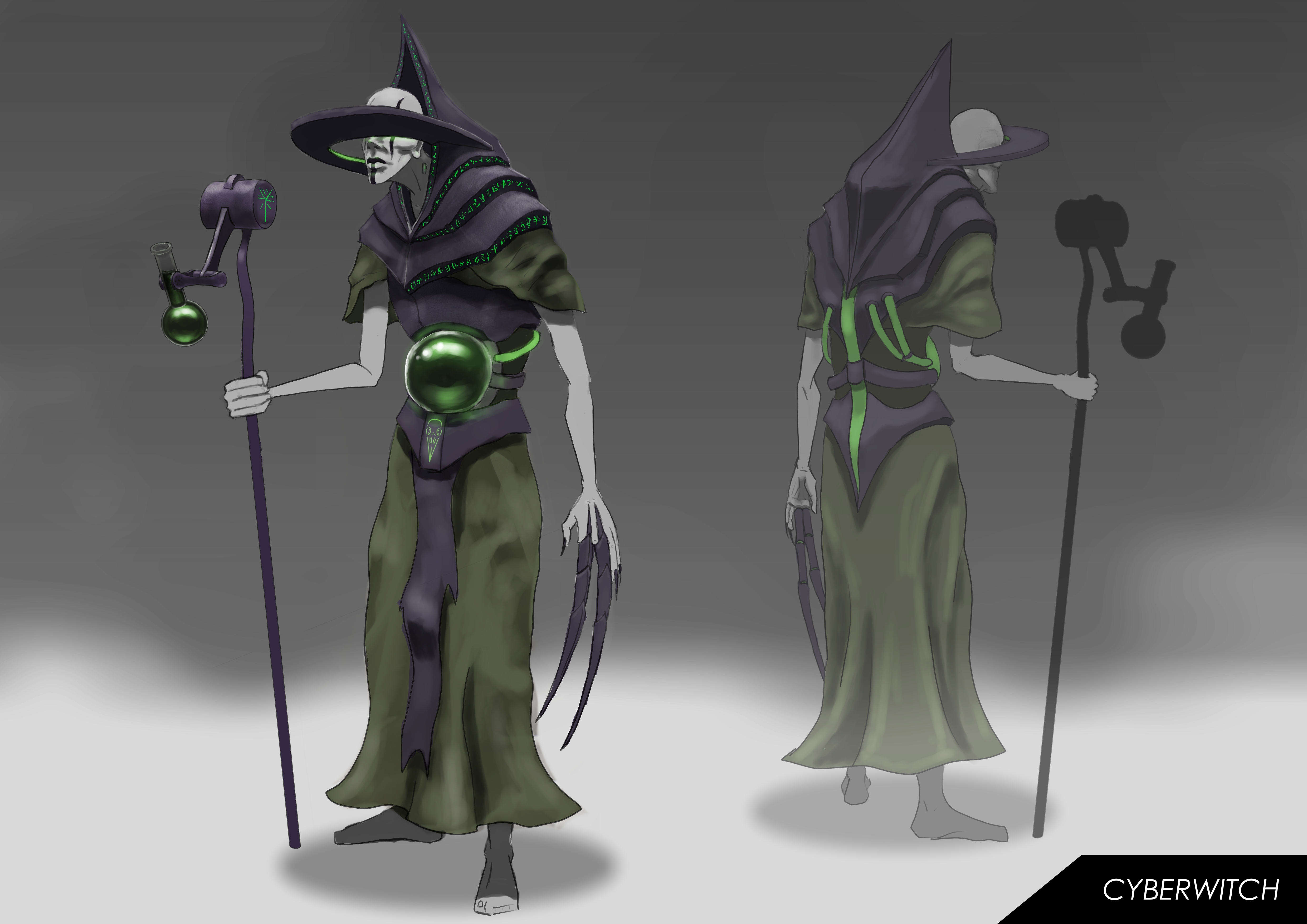 DESCRIPTION: The goal of this project was to translate common witch tropes and visual elements into a sci-fi/cyberpunk character for use in a potential RPG.