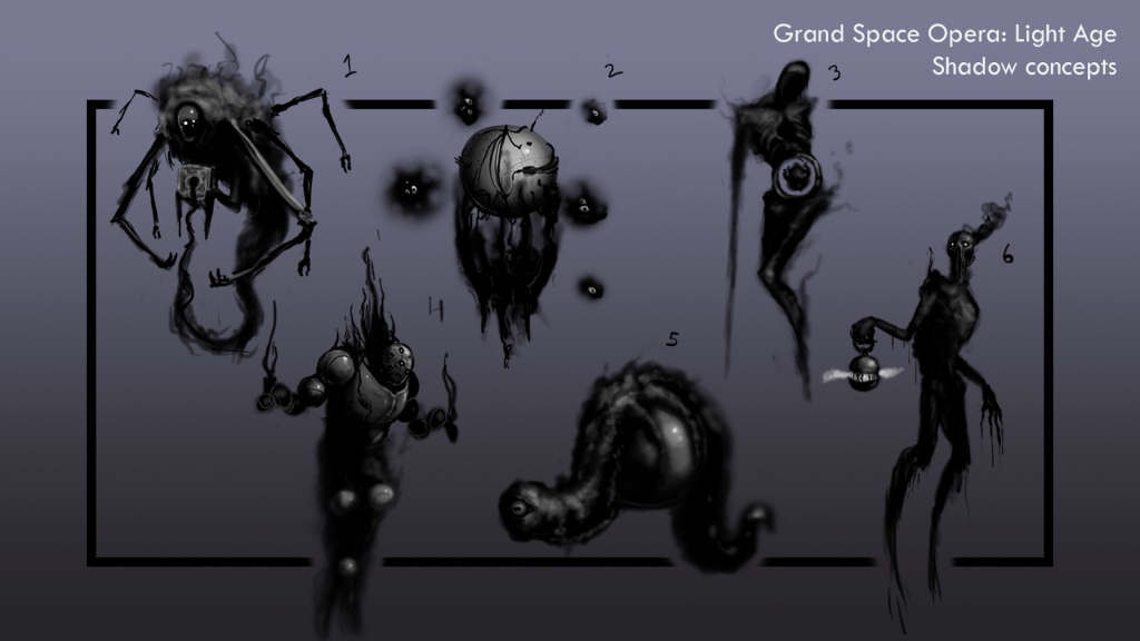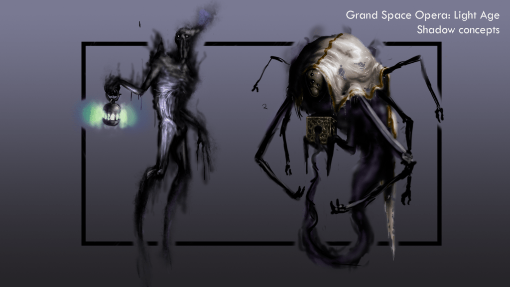 CHARACTER CONCEPT 1: Warp drive technology accidentally pierced the walls between our dimension and a shadowy dimension adjacent to ours. The native species can project themselves into our reality through this hole, but without a tether to anchor them here their tenuous presence is at risk of slipping away.