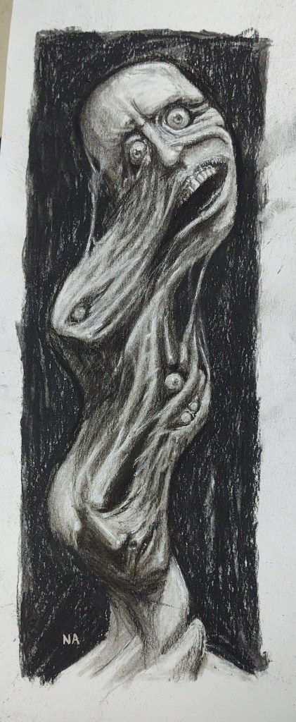 Stuff I’ve done traditionally. I mostly work with charcoal and like to draw faces, but I’ve dabbled with oil painting, sculpture, markers, and inks before.Click the images if you want a better look.